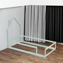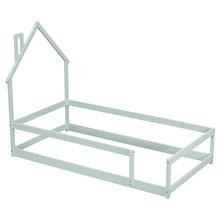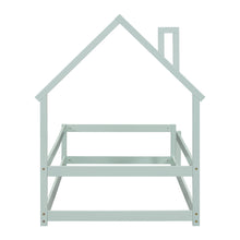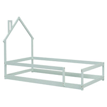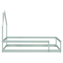 Twin Size Wood bed with House-shaped Headboard Floor bed with Fences,Light Green