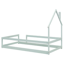 Product Name:Twin Size Wood bed with House-shaped Headboard Floor bed with Fences,Light Green