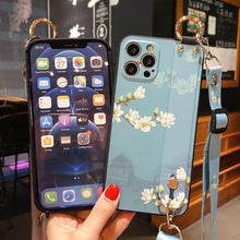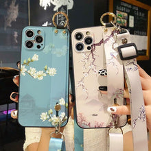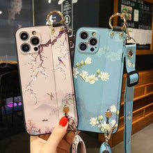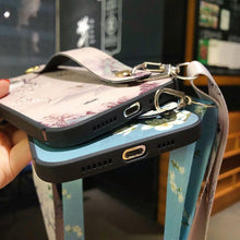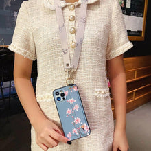 Ultra Luxury Case Cute Flower Design with Ring Kickstand Soft Crossbody Phone Cover for iPhone 13 14 Pro Max Case Fashion Crossbody Shoulder Strap Flower Leaf Phone Holder Cover for iPhone 12 11 X XR XS 7 8 Plus