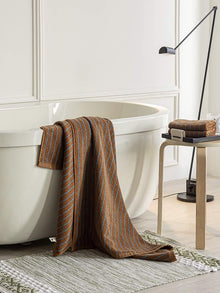 Featuring retro stripes & warm, soothing colours, these retro stripe bath towels are a mix of classic style and modern charm and the epitome of comfort. Made from luxurious 100% combed cotton, they are incredibly soft and gentle on your skin