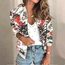 Unique Nature Design Women's jackets Floral Printed Ladies Zipper Up Bomber Outwear Spring Long Sleeve Short Thin Slim Casual Pocket Biker Coats