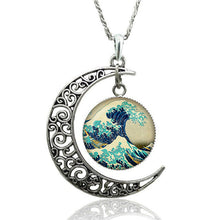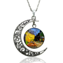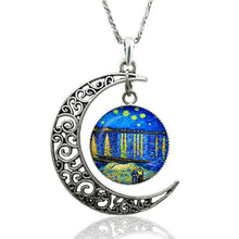 Van Gogh Starry Night Necklace Glass Cabochon Crescent Moon Clavicle Necklace Silver Plated Jewelry