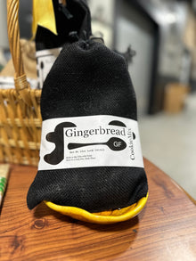 GLUTEN-FREE GINGERBREAD COOKIE MIX - BLACK Burlap Bag (10 oz.) Makes 2 dozen cookies or a 9"x 9" pan of gingerbread squares. Ingredients: rice, tapioca and arrowroot flour, sugar, Russian mulling spice (cinnamon, nutmeg, ginger, coriander & special pure orange extract [alcohol, water, and pure orange oil]), baking soda, and kosher salt. JUST ADD: canola oil or butter, molasses, and water. The mix is made from a unique blend of gluten-free flour, including rice flour, potato starch, and tapioca flour, along with sugar, baking powder, and the signature blend of spices - cinnamon, ginger, nutmeg, and cloves. These ingredients work together to create a warm and inviting aroma and flavor. The result is a dough that is perfect for creating gluten-free gingerbread cookies that are crispy on the outside and soft and chewy on the inside.