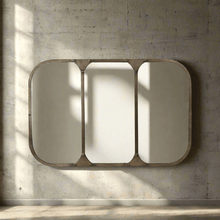 Three vertical mirrored panels evoke the structure of vintage factory windows or reclaimed warehouse doors, adding architectural interest to your space. This Vintage Industrial Wall Mirror with Aged Brass Metal Frame instantly elevates a room by reflecting both light and history. Whether mounted in an entryway, layered behind a console table, or hung above a rustic mantel, it brings depth and visual intrigue to any wall. It works beautifully in interiors that blend old and new—think cozy farmhouse living rooms, industrial lofts with exposed brick, or boho bedrooms filled with layered textiles and salvaged wood.