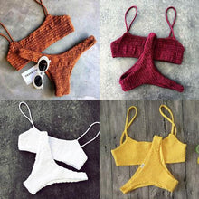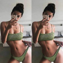 Vintage Women Push-up Padded Bra Bikini Set Pleated Swimsuit Women's Detachable Padded Cutout Push Up Striped Bikini Set Two Piece Swimsuit Swimming Beach Bathing Costume Classic Bikini Set