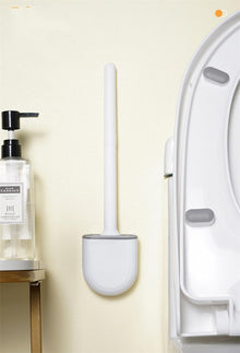 Wall-Mounted Silicone Toilet Brush Wash Toilet Accessories With Holder Soft Bristles Brushes Set Bathroom Cleaning Tool Toilet Brush Set Silicone Toilet Brush With Holder Wall Mounted With Toilet Bowl Brush And Holder Bendable Brush Head Holder