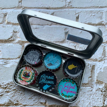 Bottle Caps: 1" Dia (actual bottle caps) - Each magnet set comes in a set of 6.