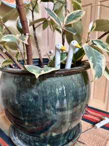 Our Goose Necks are hand-painted ceramic garden ornaments imported from Germany. Designed to peek playfully from flower beds, shrubs, or pots, these whimsical necks add a touch of humor and life to your outdoor space.