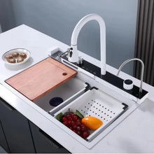 White Nano Multifunctional Kitchen Sink 304 Stainless Steel Large Single Sink Integrated Kitchen Digital Waterfall Faucet