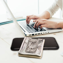 This money clip is made with super spring steel. It will hold one bill or a giant stack! The best looking and functioning clip you will ever own! The fine pewter detail is intricate. Comes with a velour hinged gift box. Made in USA.