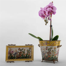 Dimension: [9Lx6.5Wx7.5H][Bot:4.5][Top:7.5]Basin With Bronze-Wild Breeze Porcelain planter with Bronze Ormolu-Wild Breeze New reproduction.  Great gift! Flower is not included. Handmade Materials: PORCELAIN Type: Porcelain/Bronze Ormolu