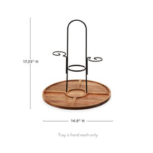 Serve a decadent cheese and charcuterie spread along with your favorite wine. Crafted from acacia wood, this cheese and wine caddy includes a built-in holder for a wine bottle and two stemmed wine glasses. It’s the perfect cheese and wine board for two.