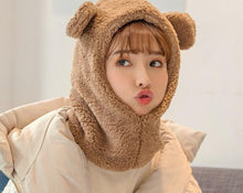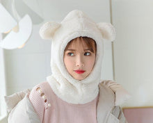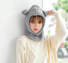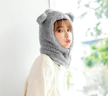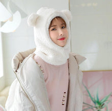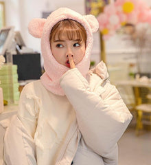 Winter Cute Bear Ears Warm Hat Windproof Neck Scarf Cap Student Women Plus Cashmere Cap Unisex Keep Warm Sports Beanies Knitted Headgear Face Hooded Cowl Neckerchief with Drawstring Soft Balaclava Pullover Knitted Beanie