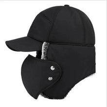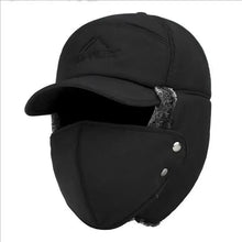 Winter Thermal Black Hat Fashion Ear Protection Face Windproof Adjustable Ski Cap Thicken Outdoor Hat