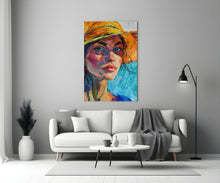 Woman in Orange Hat Glass Wall Art || Designer Collection