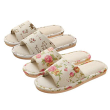Women Casual Floral Home Slippers Soft Non-slip Foam Bottom Slippers Spring Autumn Indoor Couple Linen Slipper Flip Flops Slides Slip-On Indoor Slippers For Women Soft Womens Flannel Home Bedroom Slippers