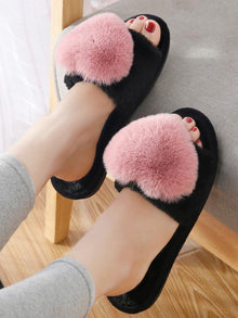 Women Indoor Warm Home Slippers Bedroom Cute Heart Pattern Non-slip Soft Comfort Plush House Heart Slippers Women Cute Fluffy Soft Sole Plush For House Indoor Outdoor Memory Foam Open Toe Slippers