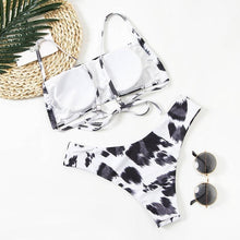 Women Lace Up Black Print Bikini Set Beach Swimsuit Women's Halter Self Bikini Set Padded Top Two Piece Swimsuit Summer Padded Bra Swim Panties Bandage Vintage Bathing Suit