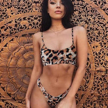 Women Wear Bikini Female Swimwear Beach Bikini Leopard Beachwear Set Women's Square Neck Wide Strap Swimsuit Cheeky Bikini Set High Waist 2 Piece Bathing Suit Bathing Suit Snakeskin Push Up Swimsuit