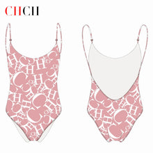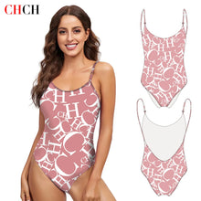 Women's Swimwear CH Letter Pink Triangle One-piece Swimsuit - Sexikinis Swim