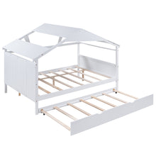 Wood Full Size House Bed with Twin Size Trundle and Storage, White
