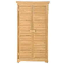 Wooden Garden Shed 3-tier Patio Storage Cabinet Outdoor Organizer Wooden Lockers with Wood (Natural Wood Color -Shutter Design)