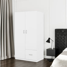 Wooden Wardrobe with Double Doors, Armoire with Hanging Rod, 5 Fixed Shelves, One Storage Drawer,White