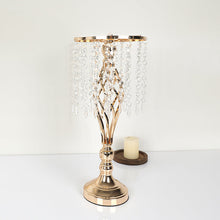 Wrought Iron Metal Flower Stand with Crystal Acrylic Beads Hanging Flower Arrangement, Gold-Plated Decoration for Wedding Tables